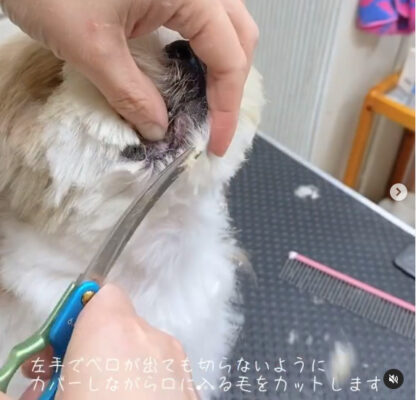 シーズーのシュガー君のマズルカットをしています。
