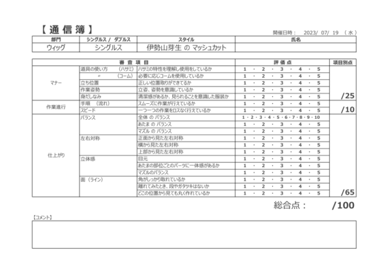 | 持ち物 | ●首から上のムーブ君1体(黒いアタッチメントは必要ありません) ブラッシング済みのウィッグを装着し、目と鼻をつけてご持参ください ●レンタル中のギザ刃のストレート ●レンタル中のすきバサミ ●コーム ●筆記用具 ●お昼ご飯や飲み物 |