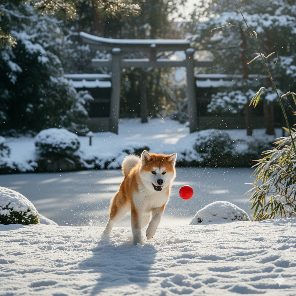 秋田犬は骨太でがっしりとした体格を持ち、寒さに耐えるための密度の高いダブルコートに覆われています。