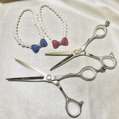 左)学校のボブバサミ 中)クラウンシザー 6.0インチ 右)クラウンシザー 5.5インチ