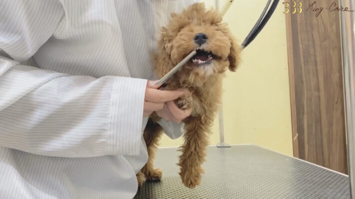 パピーちゃんは色々なものに興味津々なので一つ一つ説明しながらトリミングをしていきます。